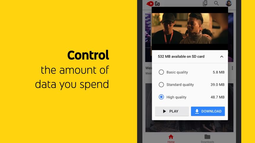 Po wyszukaniu interesującego wideo YouTube Go daje użytkownikom wybór – mogą obejrzeć go strumieniując przez sieć, lub pobrać na własne urządzenie. Nowa wersja aplikacji pozwala wybrać jakość zapisywanego wideo, informując przy tym także o wielkości pliku do pobrania w poszczególnych wersjach – pojawiła się opcja zapisywania materiałów w wysokiej rozdzielczości.